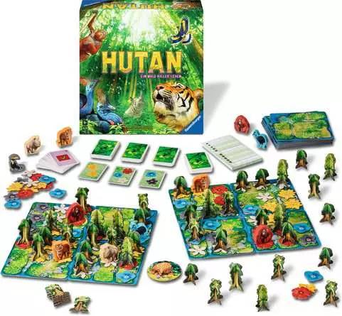 Ein farbenfrohes Familienspiel, welches nicht nur durch seine liebevolle Gestaltung, sondern auch durch seine thematische Tiefe ĂŒberzeugt. Der Name âHutanâ stammt aus dem Indonesischen und bedeutet âWaldâ und genau darum geht es. Die Spieler erschaffen ihren eigenen Regenwald, indem sie Blumen pflanzen, BĂ€ume wachsen lassen und Tiere ansiedeln.