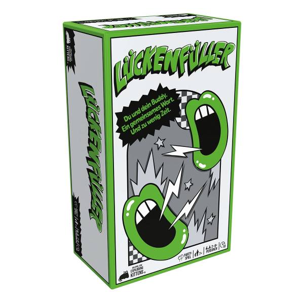 Feuerland Spiele25,70 €Im ransanten Partyspiel Lückenfüller von Exploding Kittens ist es euer Ziel, die Lücke auf der Karte so zu vervollständigen, dass ihr exakt dasselbe sagt wie euer Buddy.