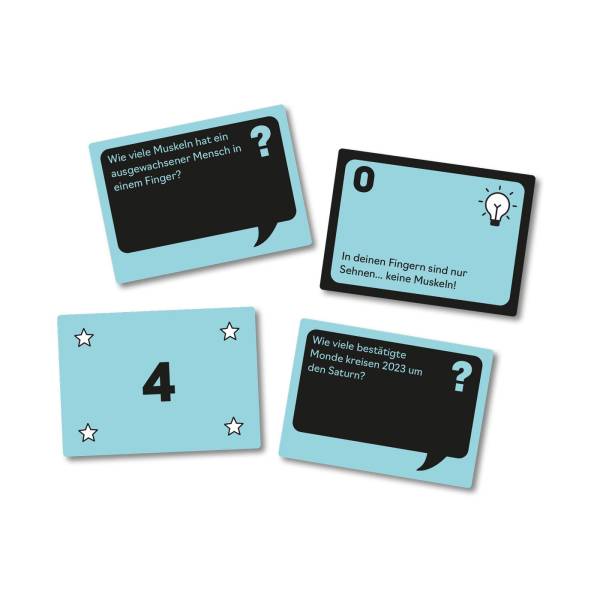 Kooperatives Party und Ratespiel. Fördert die aktive Beteiligung aller Spieler mit sehr unterschiedlichen Themen (Wissenschaft, Geschichte, Geografie, Popkultur usw.). Überraschende Fakten und zahlenbasierte Antworten, ideal für große Gruppen und Familien.