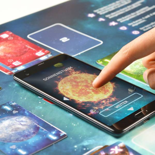 Die App steuert den im Hintergrund verlaufenen Spielbetrieb, so wird eine zufällige interne Uhr gesteuert, deren Ablauf die Sonne explodieren läßt sowie diverse Ereignisse produziert, z.B. das Auftauchen von Satelliten (in Spielerfarbe), die dem zugehörigen Spieler Vorteile bringen. Daher liegt das smarte Gerät auch in der Tischmitte und die Karten dort drumherum und zu Spielbeginn werden die nötigen Parameter eingestellt (Spielerzahl, Rassenwahl (jede mit einem bestimmten Vorteil), Anzahl der Runden).