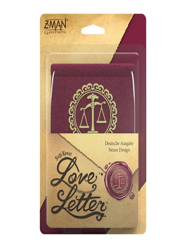 Z-Man Games (2024)In dem schnellen Kartenspiel Love Letter wetteifern die Spieler um die Gunst der Prinzessin. Wer viel riskiert, kann alles verlieren oder aber das Herz der Prinzessin gewinnen. Mit den Effekten ihrer gespielten Karten versuchen die Spieler, Informationen über die Handkarten der Mitspieler zu gewinnen oder dafür zu sorgen, dass diese ausscheiden. Am Ende gewinnt der Spieler mit der höchsten Karte oder der Spieler, der noch nicht ausgeschieden ist.