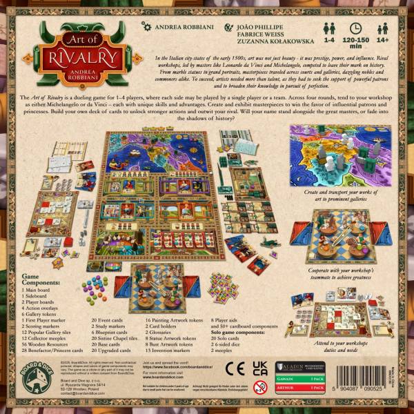 Board & Dice (2026)In the bustling Italian city-states of the early 1500s, art was not only beauty but power. Workshops competed fiercely for prestige, fueled by the rivalry of great masters like Leonardo da Vinci and Michelangelo Buonarroti. Artists labored tirelessly to create masterpieces—from sweeping frescoes to marble statues—each work a statement of skill and vision.