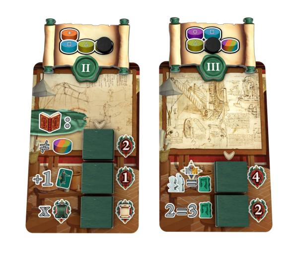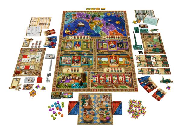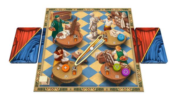In Maestro Michelangelo and da Vinci’s workshops compete for fame and aristocratic attention in various courts and galleries across the Italian peninsula. During the game, the two workshops are either represented by a single player or a team of players.