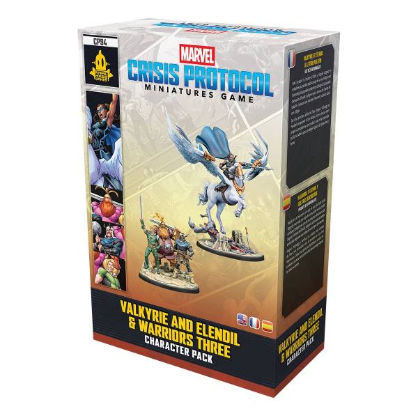 The character pack Valkyrie and Elendil & Warriors Three for Marvel: Crisis Protocol contains miniatures, Character Stat Cards, and Team Tactic Cards.