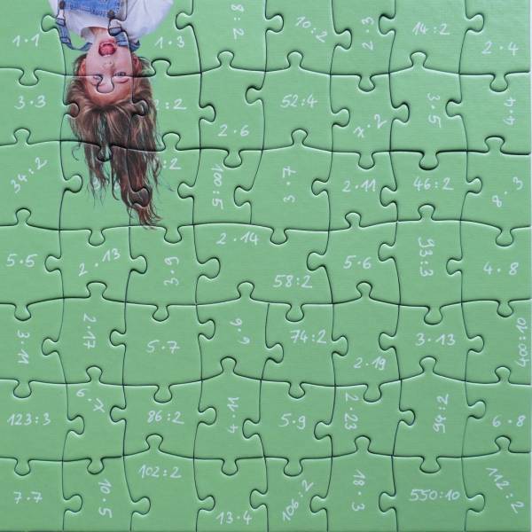 Beim blauen Puzzle müssen die Teile nach ihren fortlaufenden Zahlen von 1 - 56 gelegt werden. Das orangefarbene Puzzle erfordert erste Kenntnisse in Addition und Subtraktion. Die Lösung der jeweiligen Rechenaufgabe verrät zugleich die Position im Puzzle: ist die Lösung 1, so gehört das Teil links oben hin, ist die Lösung 56, so ist es dasjenige rechts unten. Für das grüne Puzzle braucht man Multiplikation und Division. Und weil das Spiel aus drei Puzzles besteht, können es mehrere, auch unterschiedlich alte Kinder gleichzeitig spielen. Und Erwachsene polieren nebenbei ihre Kopfrechen-Künste auf...