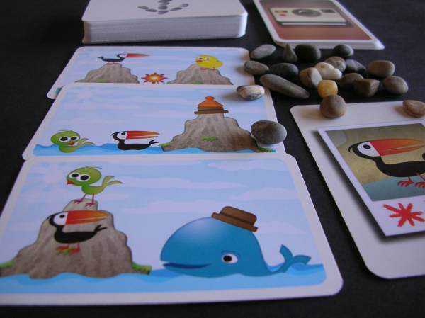 Als Naturforscher beobachtet ihr die Tiere und Blumen in der Gegend von Mount Memo. Ihr legt Landschaftskarten übereinander, so dass ein Kartenberg stetig wächst. Wie viele Tukane habt ihr schon gesehen? Und wo waren die zu finden? Am Berg oder im Wasser? Denn der Geländeunterschied spielt bei der Wertung eine entscheidende Rolle und bringt so manchen Beobachter gehörig durcheinander. Schieße im richtigen Moment deine Fotos und gewinne echte Kieselsteine!
