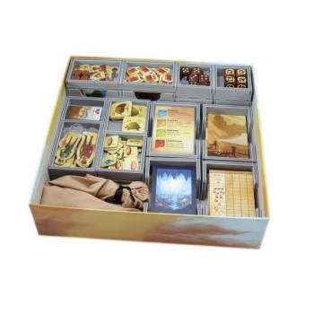 expansion. The design provides both efficient storage and improved game play. Many of the trays can be utilised during the game, and they greatly aid set-up and clear-away times. The rules, books, and boards act as a lid on top of the trays.