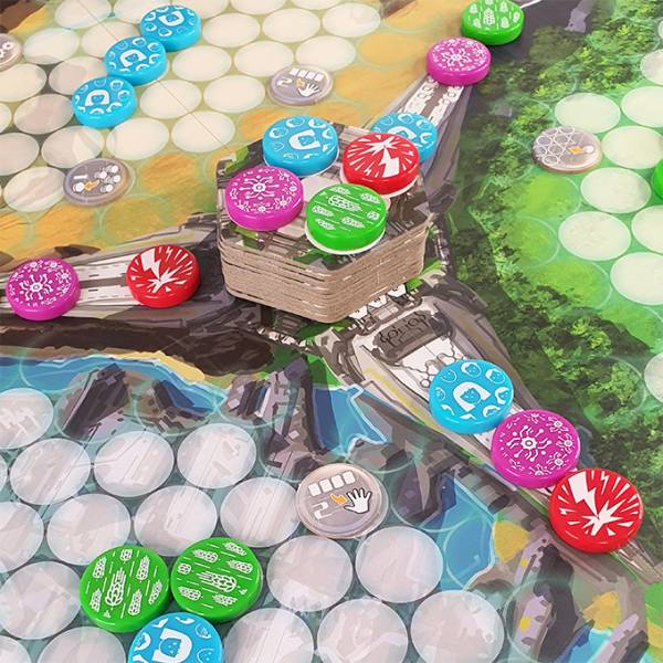 In Neotopia, a competitive fast paced tile placement pattern building game, you are part of a team of Visionaries who are building a futuristic pilot city focused on the fields of Energy, Technology, Community and Sustainable food.