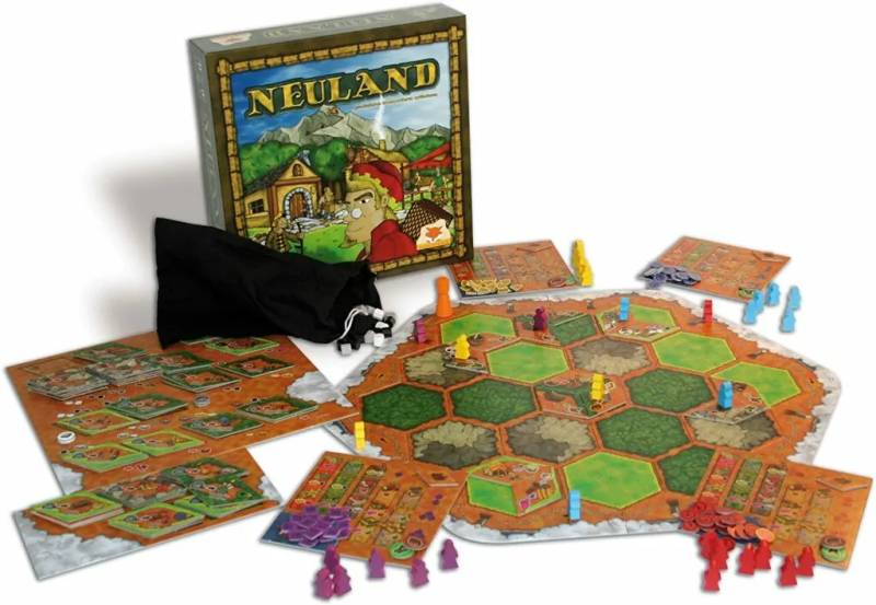 eggertspiele (2004)Bei dem Brettspiel Neuland von Eggertspiele lassen die Mitspieler mit Holz, Stein und Gütern aus Wald und Wiese eine Industrie entstehen. Diese wiederum kann dann die Güter wie Papier, Waffen und Tücher herstellen. Wer bekommt die Abtei, das Zunfthaus, das Rathaus oder die Festung? 15 verschiedene Besitztümer versprechen Fortschritt und Wohlstand und müssen verteilt werden. So erhält man seine Wappen auf die Besitztümer und wer am Ende die meisten Wappen gesammelt hat ist der Sieger.