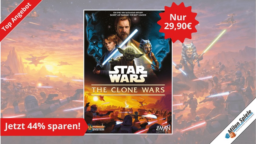 Im Kennerspiel Star Wars: The Clone Wars – Ein Brettspiel mit dem Pandemic-System schlüpfst du in die Rollen legendärer Jedi-Generäle wie Yoda, Obi-Wan Kenobi oder Ahsoka Tano. Führe deine Klontruppen gegen die Droidenarmeen der Separatisten, nutze Jedi-Fähigkeiten clever und erfüllt gemeinsam Missionen, um die Galaxis zu retten! ⚔️