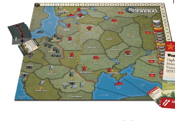 Quartermaster General: East Front provides an in-depth look at one of the major operational theaters of the World War in less than two hours. The game is played over 16 game rounds, each representing three months, starting in Summer 1941 and ending in Spring 1945.