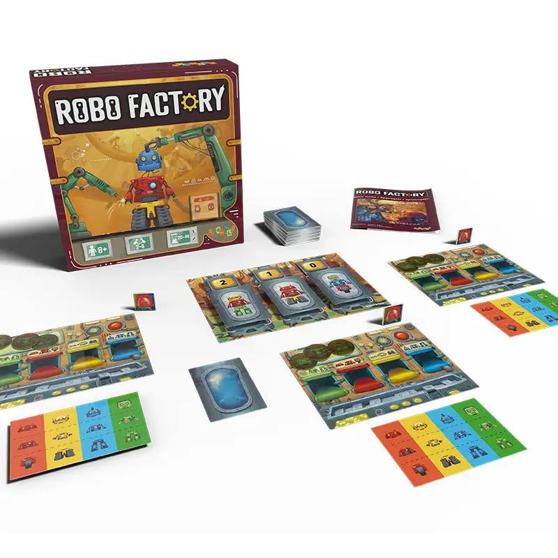 Analyze the hints given by the customer, decide if you want to buy more information from the customer and finally produce the correct robots to win the game!