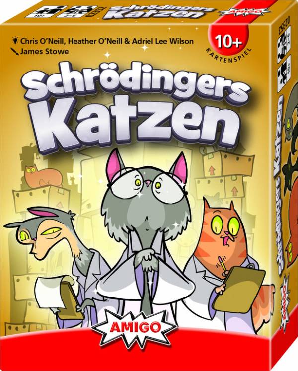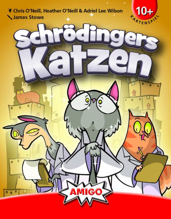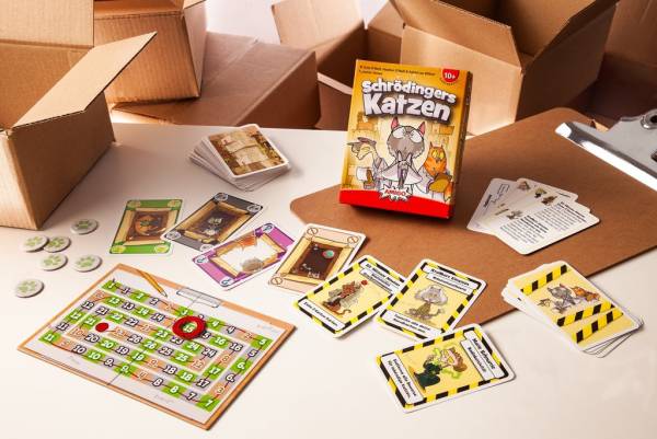 Das Kartenspiel Schrödingers Katzen bringt das weltbekannte Gedankenexperiment von Quantenphysiker Erwin Schrödinger mit einem Augenzwinkern auf den Spieltisch. Wichtige Wissenschaftler der Weltgeschichte sind in karikierter Katzengestalt ebenfalls mit von der Partie.