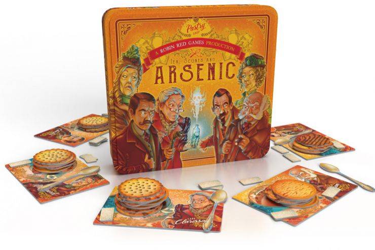 In ARSENIC, you are members of an old English aristocratic family. Your uncle from America had the excellent idea of ​​passing away bequeathing you his immense fortune. To celebrate the event, you decide to go for tea and enjoy some scones. However, each being equally greedy, each of the heirs decides to poison the cookies with Arsenic (a safe bet) in order to increase their share of the inheritance. Digestion promises to be difficult... Can you survive this ordeal? ARSENIC is a family game, for 1 to 6 players, from 7 years old. The game lasts about 15 minutes. It’s a party-game full of bluff, strategy and a hint of luck. Players must compete boldly but with self control to stop before it’s too late. A good statistical analysis of the remaining cookies and their potential dangerousness should give you an advantage... But these reassuring figures are unfortunately often distorted by the limitless treachery of your opponents. Be careful because sometimes it takes very little to get trapped in a poisonous downfall... The trick is to best estimate the right time to stop. That is to say, when only remain in the box a handful of cookies potentially all poisoned. When one player stops, the others are forced to continue for 2 more turns. Therefore, beware of the other players expressions as they draw, in order to estimate their level of poisoning. This will help you choose the right time to give them the final blow. Obviously, they can play the fool and hide their true state (those tricksters!). However, make sure you have a good amount of cookies so you don’t loose the legacy for one or two cookies less than another survivor.