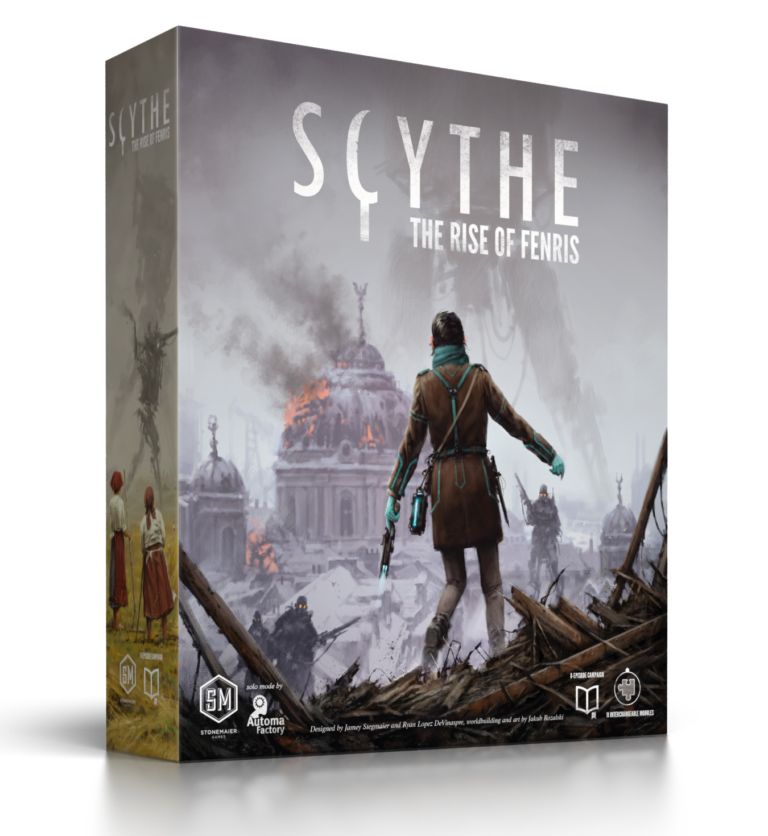 Stonemaier Games (2018)Empires have risen and fallen in the aftermath of the Great War, and Europa stands on the precipice of a new era. The economy is robust, morale is high, and defenses are strong. There are reports from the countryside of strange soldiers with glowing eyes, but they seem distant and harmless.Scythe: The Rise of Fenris, the conclusion to the Scythe expansion trilogy, enables two different options for any player count (1-5 if you have Scythe; 1-7 players if you have Invaders from Afar):? Campaign (8 games): The story of Scythe continues and concludes with an 8-epi-sode campaign. While the campaign includes surprises, unlocks, and persistent ele-ments, it is fully resettable and replayable.? Modular (11 modules): Instead of?or after?the campaign, the new modules in The Rise of Fenris can be used in various combinations to cater to player prefer-ences. These modules are compatible with all Scythe expansions, and they include a fully cooperative module.While the exact nature of the episodes and modules will remain a mystery (most of these components are in 5 secret tuckboxes and on 6 punchboards), the components in this expansion include a detailed episodic guidebook, 13 plastic miniatures, 62 wooden tokens, 2 custom dice, 25 tiles, and 100+ cardboard tokens.