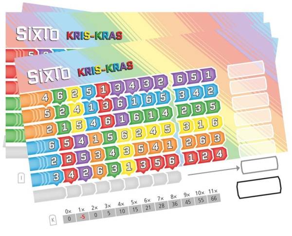Ludonova14,90 €Der Sixto: Kris-Kras-Erweiterungs-Punkteblock ändert die Sixto-Regeln nicht. Die Spieler versuchen weiterhin, viele Felder in einer Zeile oder Spalte abzuhaken, um viele Punkte zu erzielen. Doch anstatt dass jede Zeile nur Felder einer Farbe enthält, erstrecken sich die Farben nun über Spalten und Teile von Zeilen.