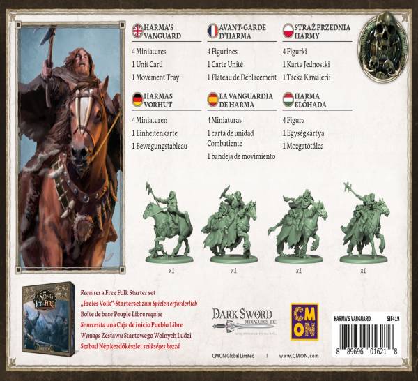 Die Einheiten-Erweiterung A Song of Ice & Fire - Harma’s Vanguard (Harmas Vorhut) bringt vier Miniaturen in die beliebte Welt des epischen Tabletop-Spiels. Enthalten sind vier Mitglieder von Harmas Vorhut sowie eine Einheitenkarte und ein Bewegungstableau.