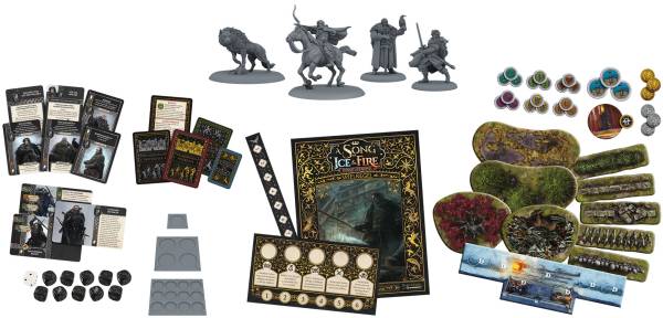 Das A Song of Ice and Fire - Nachtwache Starterset gibt euch alles um mit der Nachtwache in die Schlacht zu ziehen. Dieses Set enthält zwei Einheiten Sworn Brothers, eine Einheit Veterans of the Watch, eine Einheit Ranger Trackers, sowie weitere Charaktere und Einheitenausrüstungen wie z.B. Jon Snow, seinen Direwolf Ghost und Jeor Mormont. Außerdem sind Würfel, Marker und Terrain enthalten.