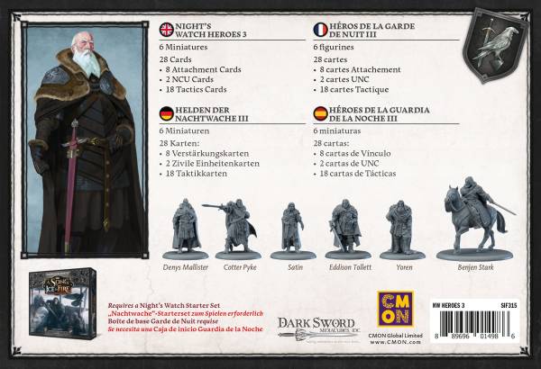 CMON (2022)Die Einheiten-Erweiterung A Song of Ice & Fire - Night’s Watch Heroes 3 (Helden der Nachtwache 3) bringt insgesamt sechs ikonische Miniaturen in die beliebte Welt des epischen Tabletop-Spiels.