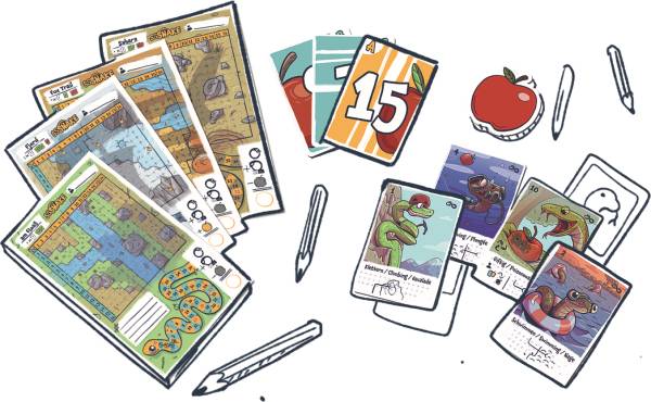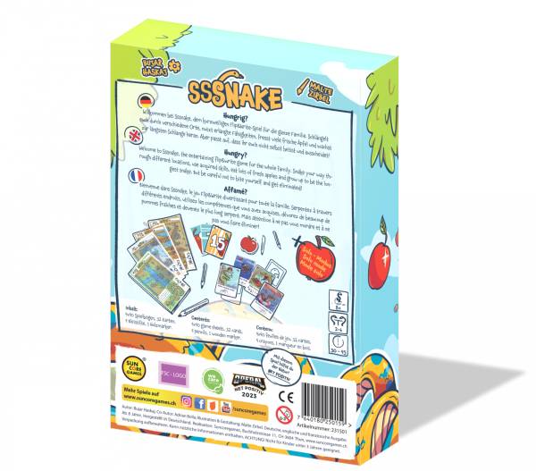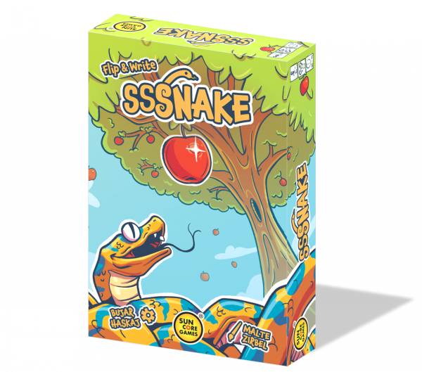Hungrig? Willkommen bei Sssnake, dem kurzweiligen Flip&Write-Spiel für die ganze Familie. Schlängelt euch durch verschiedene Orte, nutzt erlangte Fähigkeiten, fresst viele frische Äpfel und wachst zur längsten Schlange heran. Aber passt auf, dass ihr euch nicht selbst beißt und ausscheidet!