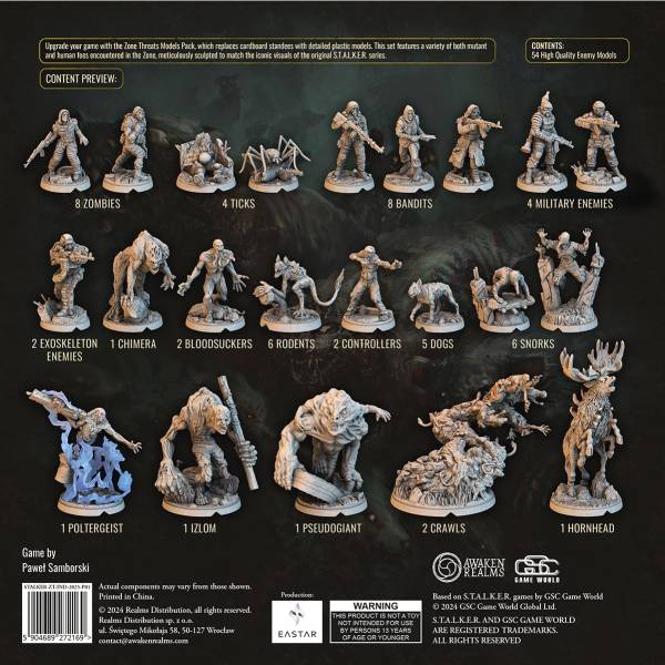 Awaken Realms (2025)Dieses Set enthält eine Vielzahl von mutierten und menschlichen Gegnern, denen Du in der Zone begegnest, die sorgfältig modelliert wurden, um dem ikonischen Look der ursprünglichen STALKER-Reihe gerecht zu werden.