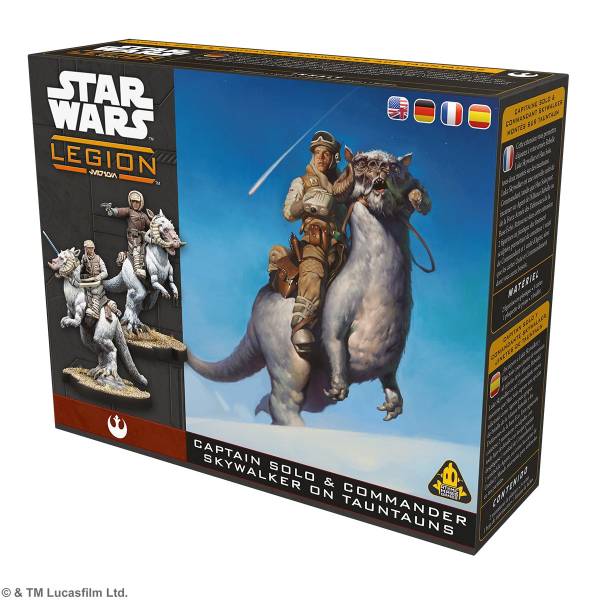Atomic Mass Games (2026)Mit der Box Captain Solo & Commander Skywalker on Tauntauns für das Miniaturenspiel Star Wars™: Legion erhältst du Luke Skywalker und Han Solo auf ihren Tauntauns für deine Rebellen-Armee. Luke Skywalker ist eine neue Commander-Option, während Han Solo eine neue Agenten-Option für die Rebellenallianz oder den Kampftrupp „Verteidiger der Echo-Basis“ darstellt.