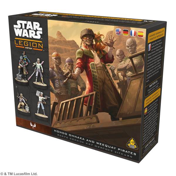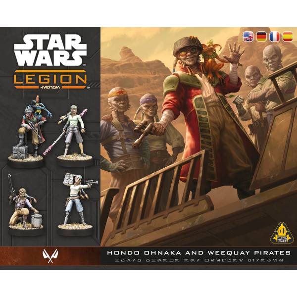 Die Box Hondo Ohnaka and Weequay Pirates für das Miniaturenspiel Star Wars™: Legion enthält 10 hochdetaillierte Miniaturen für 1 Agenten und 1 Söldner-Korps sowie passende Aufwertungs- und Einheitenkarten.