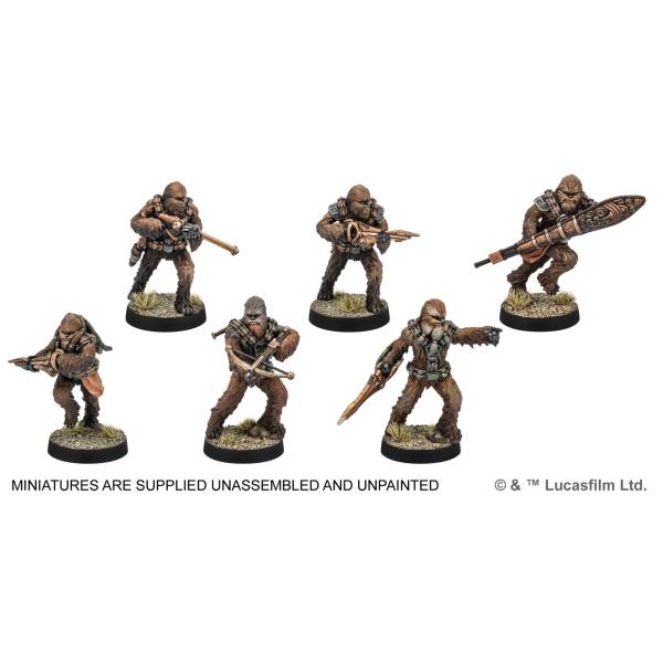 Die Box Wookie-Krieger von Kashyyyk für das Miniaturenspiel Star Wars™: Legion enthält 6 mächtige Wookiee-Truppler, die als Spezialeinsatzkräfte-Einheit deine Republik- oder Rebellen-Armee verstärken.