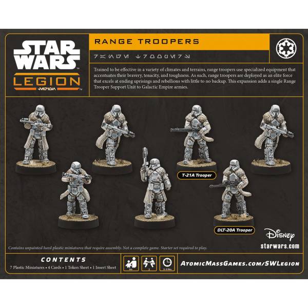 Dieses Set enthält eine Gebirgstruppen-Einheit für deine imperiale Armee. Das Set Gebirgstruppen für das Miniaturenspiel Star Wars™: Legion enthält 7 Miniaturen für deine imperiale Armee, genug für eine Gebirgstruppen-Einheit.