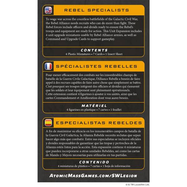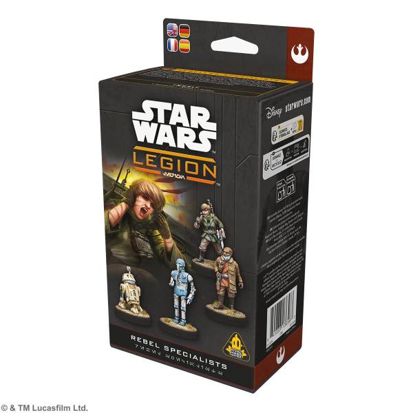 Die Box Rebellen-Spezialisten für das Miniaturenspiel Star Wars™: Legion enthält 4 Miniaturen, die zu Einheiten hinzugefügt werden können, sowie passende Kommando- und Aufwertungskarten.