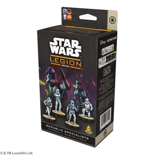 Die Box Spezialisten der Republik für das Miniaturenspiel Star Wars™: Legion enthält 4 Miniaturen, die zu Einheiten hinzugefügt werden können, sowie passende Einheiten-, Kommando- und Aufwertungskarten.