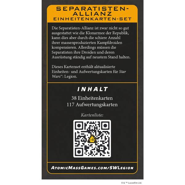Atomic Mass Games (2025)Aktualisiere deine Star Warsâ„¢: Legion-Kartensammlung mit dem Einheitenkarten-Set der Separatisten-Allianz.