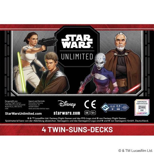 Fantasy Flight Games DE (2026)Kommt zurück auf die Schlachtfelder der Klonkriege mit dem „Star Wars™: Unlimited 2026 Twin Suns Deck Display“, einem kompletten Multiplayer-Erlebnis für epische Free-for-All-Kämpfe. Das Twin-Suns-Format ist für 3–4 Spieler gedacht und bringt eine dynamische Wendung ins Star Wars: Unlimited-Sammelkartenspiel, wo sich Allianzen ändern und Strategien sich mit jedem Zug weiterentwickeln.