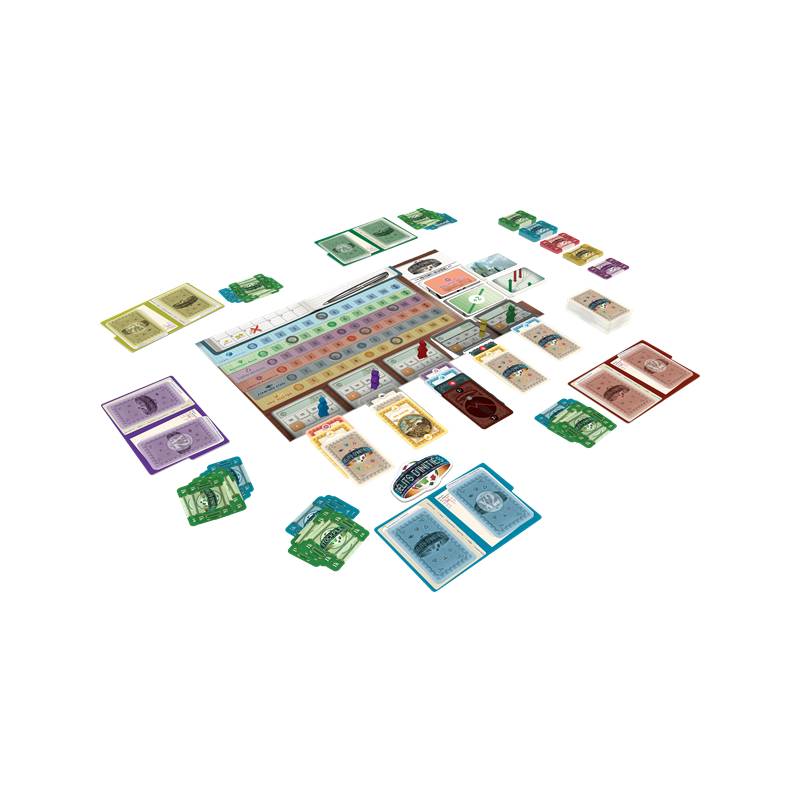 Matagot (2025)Stockpile is an economic board game that combines the traditional stockholding strategy of buy low, sell high with several additional mechanisms to create a fast-paced, engaging and interactive experience.