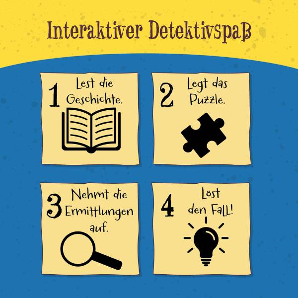 Inhalt: 100-Teile-Puzzle, Anleitung mit Kurzgeschichte und Such- und Rätselaufgaben, 1 Stickerbogen, 1 Stanztafel>