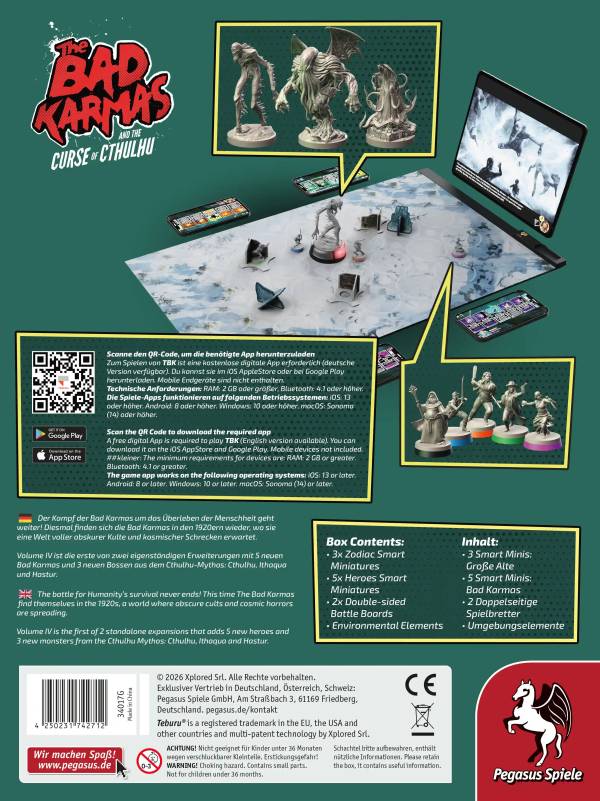 Pegasus Spiele (2026)Der Kampf der Bad Karmas um das Überleben der Menschheit geht weiter! Diesmal finden sich die Bad Karmas in den 1920ern wieder, wo sie eine Welt voller obskurer Kulte und kosmischer Schrecken erwartet.