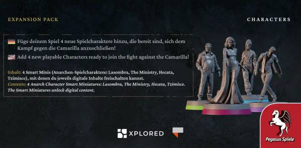 Pegasus Spiele (2026)Füge deinem Spiel 4 neue Spielcharaktere hinzu, die bereit sind, sich dem Kampf gegen die Camarilla anzuschließen!