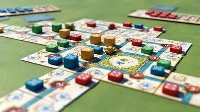 On each turn, players have a range of actions to perform. They can expand the city by placing a new tile, construct buildings by stacking their pieces on valid spaces, or enhance their strategy by placing market tiles, which grant immediate points. Additionally, once their boat is unlocked, players can move it across the board to relocate building pieces or block opponents from expanding into key areas. The interplay of these actions creates a dynamic and interactive experience as players compete for control of the city.