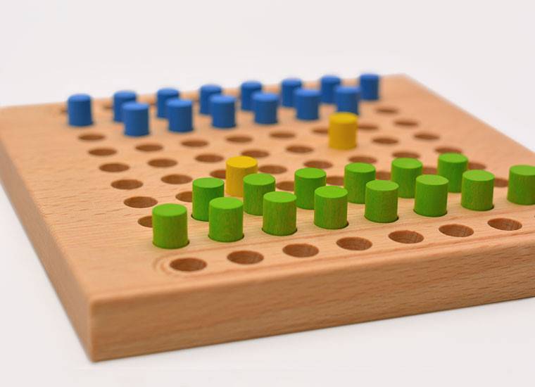 Erlaubt sind einfache Sprünge, wie man sie aus vielen Spielen kennt. Kettensprünge sind auch möglich. Der Clou aber sind Weitsprünge, bei denen sich vor und hinter einem anderen Stecker immer die gleiche Anzahl leerer Felder befinden muss. Das Kombinieren dieser verschiedenen Sprünge führt auf schnellstem Weg ins Ziel.