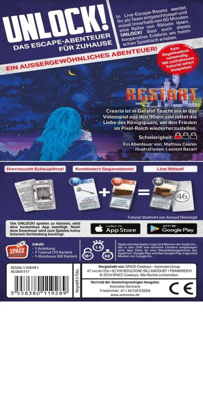 Space Cowboys (2024)Unlock! Restart ist ein Einzelszenario der Unlock!-Reihe. In diesem Einzelszenario erlebt ihr ein Abenteuer in einer außergewöhnlichen Welt.