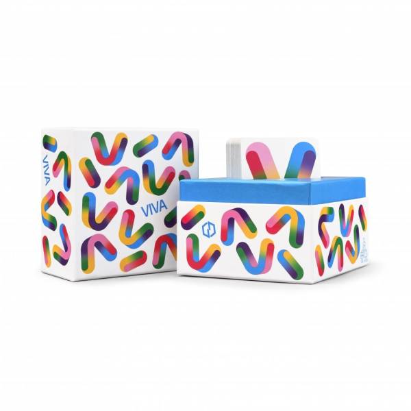 Bunt, bunter, VIVA! Das farbenfrohe Kartenspiel für Schnelldenker*innen - lässt Köpfe glühen und Herzen hüpfen.