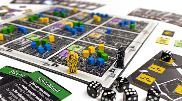 Er bewegt sich am Rundenende durch die Stadt und nimmt Einfluss auf den Spielplan. Werdet ihr auf "Die Detektivin", "Die Viper" oder den "Korrupten" treffen? Letzterer lässt zum Beispiel alle Polizisten aus einem bestimmten Stadtteil verschwinden.
