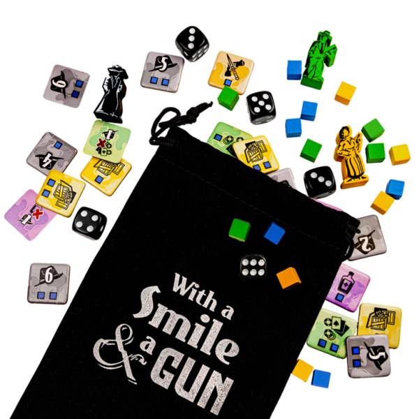 With a Smile & a Gun ist ein spannendes und taktisches Würfeleinsetzspiel im unteren Kennerbereich für 2 Personen inklusive umfangreichem Solomodus.