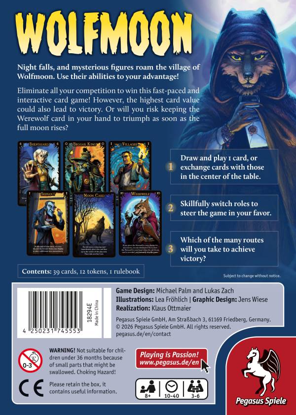 Pegasus Spiele (2026)Leider sind in unserem Shop zu diesem Artikel noch keine weiteren Informationen vorhanden. Eine genaue Beschreibung folgt demnächst. Ob Brettspiel oder Kartenspiel - zu vielen Spielen finden Sie auf den folgenden Internetseiten weitere Informationen: