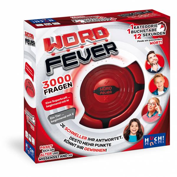 Huch & Friends (2021)Die Herausforderung ist klar: Ein Thema. Ein Buchstabe. Und ein Wort, das dazu passt. Finde schnell eine Lösung und sei der Erste, der den Buzzer drückt. Je schneller du antwortest, desto mehr Punkte kannst du gewinnen."Nennt etwas, das vor 100 Jahren noch nicht existiert hat und das mit I beginnt". Der Countdown läuft, drück auf die Taste und rufe die richtige Antwort: "Internet!" und die Siegpunkte gehören dir. Word Fever ist die actiongeladene Stadt-Land-Fluss-Konsole für die ganze Familie!