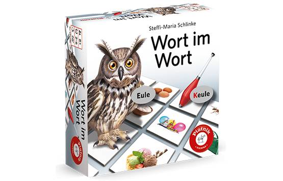 Eier-Feier, Lasche-Flasche, Ohr-Rohr und 24 weitere Paare gilt es in „Wort im Wort“ möglichst schnell zu finden. Dazu werden alle 54 Plättchen verdeckt in der Tischmitte aufgelegt. Wer an der Reihe ist, deckt nach bekannten Memo-Spielregeln zwei Kärtchen auf, sodass alle sie sehen können. Passen die Begriffe der Bilder zusammen, etwa „Asche“ und „Tasche“, dann darf man sich das Pärchen behalten und sein Glück gleich noch einmal versuchen.