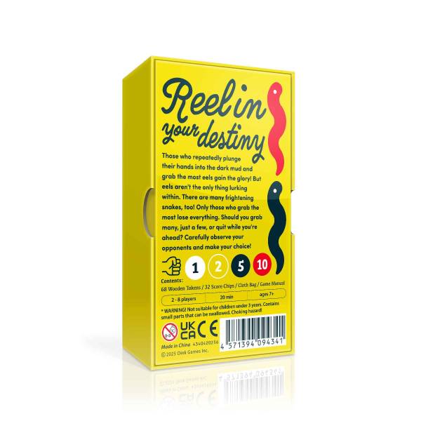 Players take turns reaching into a bag filled with eel and snake-shaped wooden pieces, trying to pull out as many eels as possible. But beware—if the number of snakes grabbed by all players exceeds the limit, a "snake outbreak" occurs, and the player who grabbed the most pieces loses all of their eels. You want to grab more than everyone else to score big, but a snake outbreak would be devastating...